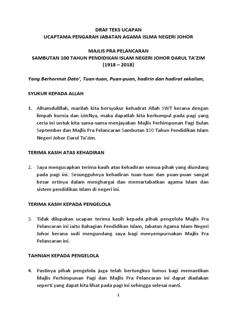 Download as DOCX PDF TXT or read online from Scribd. Ucapan pihak majlis mengucapkan ribuan terima kasih kepada yang berusaha pn hjh jamilah bt hj abdullah atas ucapan itu tadi. Jutaan tahniah dan syabas kepada kepada semua tenaga penggerak yang komited menjayakan majlis ini.